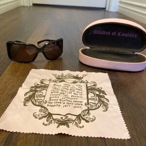 Y2K VINTAGE JUICY COUTURE SUNGLASSES CASE & CLOTH ROYAL CROWN BROWN TORTOISE