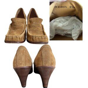 Y2K VINTAGE MICHAEL KORS TAN SUEDE THICK STITCH PENNY LOAFER WEDGE HEELS 8.5