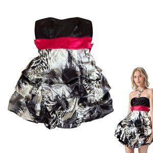 BEAUTIFUL GRAPHIC PUFFY BUBBLE SKIRT WITH BLACK STRAPLESS TOP