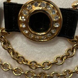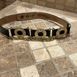 VINTAGE STREETS AHEAD LEATHER EMBELLISHED BELT CHAINS RHINESTONES SZ S