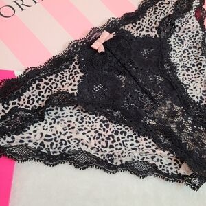 Y2K VS Dream Angels Silky Satin Nylon Lace Cheekini Panty Size XS Leopard