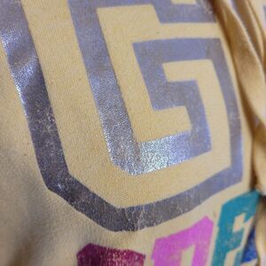 Victoria's Secret Pink Y2K era bright yellow hoodie with go green in distressed rainbow and metallic lettering. Show your love of saving the planet and recycling with this fun sweatshirt. Cotton polyester.