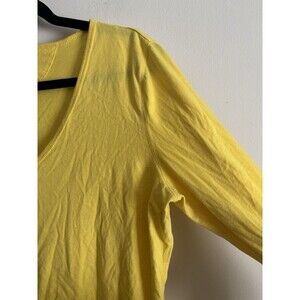 Y2K 2000s long sleeve v neck top in a bright neon yellow color! Perfect year round and looks great with shorts, jeans, pants, cardigans, and more. Fun on it's own and a great base layer. Tropical, colorful, and fun. Great for 2000s preppy wardrobes.
