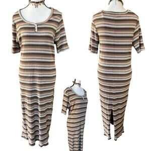 1. 90'S CHORUS BLUES MADE IN USA RIBBED STRIPE SWEATER DRESS MAXI. LARGE/XL 50" LONG, 20" PIT TO PIT FLAT LAY, 18" ACROSS THE WAIST FLAT.