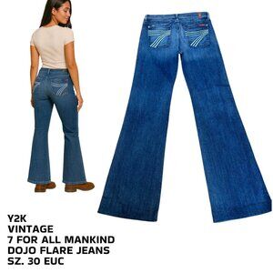 Y2K VTG. 7 FOR ALL MANKIND DOJO DARK WASH FLARE JEANS SZ. 30" EUC