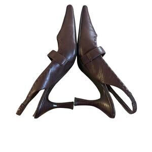 Y2K VTG. BROWN LEATHER SLINGBACK BUCKLE POINTED TOE HEELS PUMPS 8.5 WORTHINGTON
