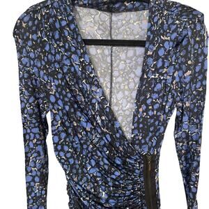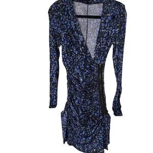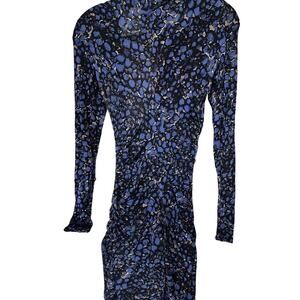 Y2K VTG. Bebe blue and black long sleeve ruched dress with zipper X SMALL