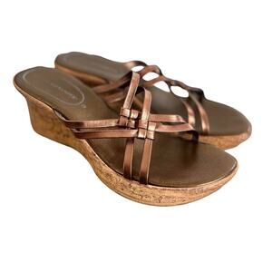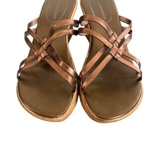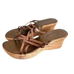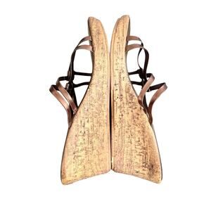Y2K VTG. CHUNKY BROWN/BRONZE LEATHER WEDGE SANDALS SZ. 9.5-10 EUC
