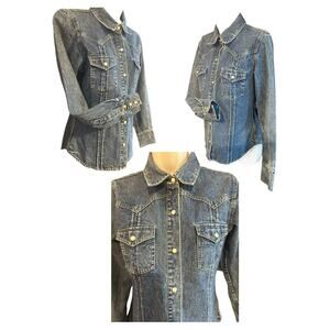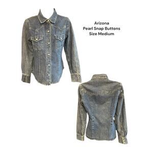 Y2K VTG Denim Jacket Pearl Snap Cowboy Western Arizona Jean Co Women Sz Medium
