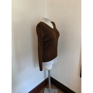 Y2K VTG Joseph A. Sweater M Metallic Bronze Thread Knit Ribbed Sexy Snug V Neck