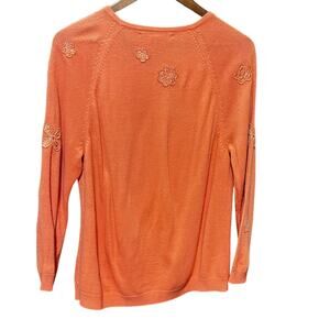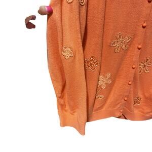 Y2K VTG Josephine Chaus Women Beaded Flower Cardigan L Peach Cottagecore Boho