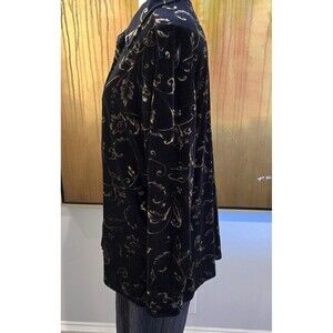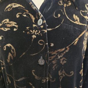 Y2K VTG Kathie Lee Collection Shirt Womens Medium Black Bronze Velour Floral