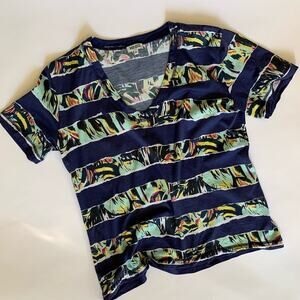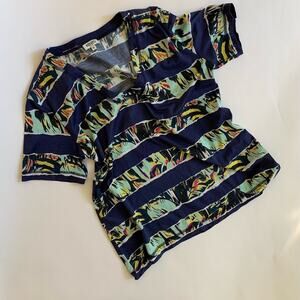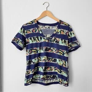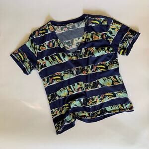 Y2K VTG Kenzo Paris Graphic Striped Cotton T-Shirt XL 90s Abstract Floral Navy