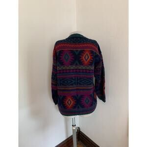 Y2K VTG Nomadic Traders Cardigan Sweater Geometric Aztec Knit Boho Wool Peru