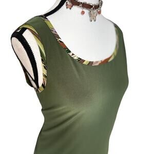 Y2K VTG. OLIVE GREEN TRIMMED RELAXED BLOUSE TANK MEDIUM BY ATTITUDES BY RENEE