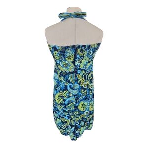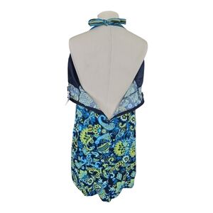 Y2K VTG R& K Colorful Blue and Green Paisley Halter Dress 12