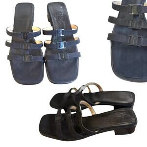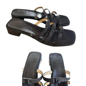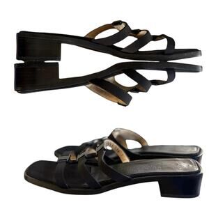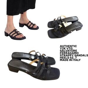 Y2K VTG. SALVATORE FERRAGAMO BLACK STRAPPY SANDALS HEELS SZ. 7 EUC