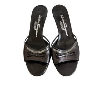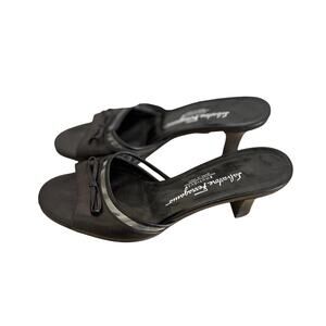 Y2K VTG. SALVATORE FERRAGAMO BOUTIQUE BLACK LEATHER BOW SLIDES HEELS SZ. 7