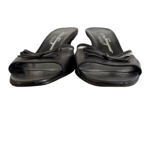 Y2K VTG. SALVATORE FERRAGAMO BOUTIQUE BLACK LEATHER BOW SLIDES HEELS SZ. 7.