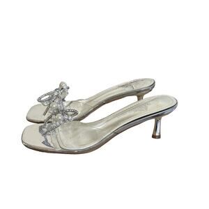Y2K VTG. SILVER PEARL RHINESTONE CLEAR KITTEN HEEL SANDALS