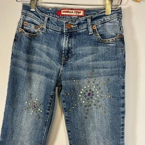 Y2K Vanilla Star Embellished Low Rise Flare Stud Pattern Jeans 3 (26 inches)