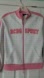 BCBG SPORT pink and white track jacket NWT. Old stock. 2 pockets in front. Zipper zips both ways. Size S. Marking on zipper is on the inside.