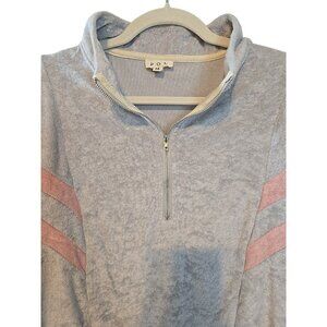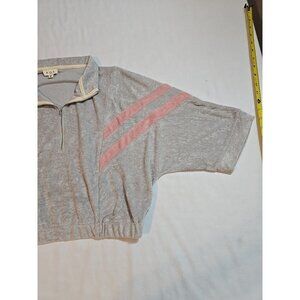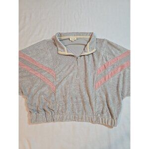 Y2K Velour Crop top 1/4 zip dolman sleeves mob wife size M gray and pink POL