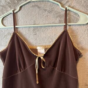 Y2K Velvet Brown Lace Trim Tank Top With Bow Women's Size Small Baby Doll Tank