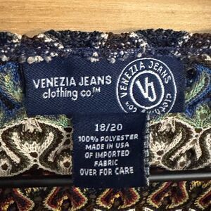 Y2K Venezia Size XLarge Retro Crinkle Textured Swirly V Neck Flare Sleeve Blouse
