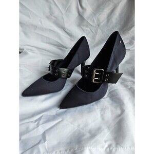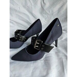 Y2K Vera Wang Pointed Toe Kitten Heels 7 1/2 M Strap On Navy & Black