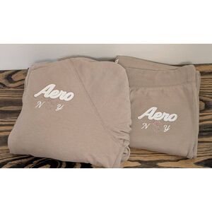 A classic, comfortable Aeropostale two-piece set in a neutral tan/khaki color.