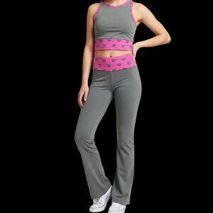 Y2K Victoria Secret PINK VTG Foldover Yoga Flare Hot Pink Heart Dog Print Med