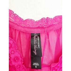 Y2K VS Victorias Secret Sexy Little Things hot pink sheer babydoll lingerie mini dress/cami top. Circa Spring 2006. Flowy silhouette. Made with sheer see through mesh and accented with lace trim and piping details. Ribbon slotted lace neckline with a bow on the center of the neckline.