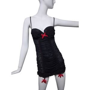 Y2K Victoria's Secret Babydoll Womens size 36B Ruched Lace Garter Belt Lingerie