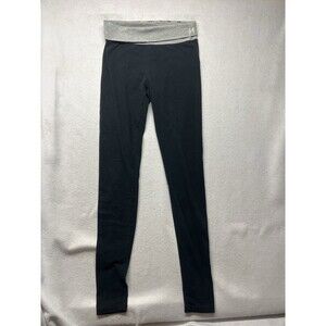 These Victoria's Secret Fold Over Waistband Angel Spell Out Leggings in size Medium Tall are perfect for women who love the athleisure style. The black leggings feature a comfortable knit fabric blend of spandex and cotton, making them ideal for activities like walking and yoga. The fold over waistband adds a trendy touch to these ankle-length leggings, while the Victoria's Secret branding brings a touch of exclusivity to your wardrobe.