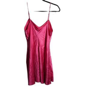 Y2K Victoria's Secret Hot Pink 100% Silk Slip Mini Dress Lingerie Chemise Slit M