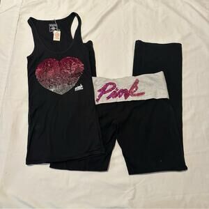 Y2K Victoria’s Secret PINK Bling Foldover Flare Leggings and Tank Top