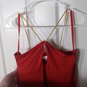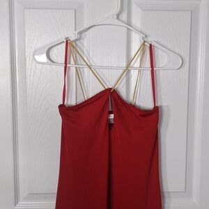 Y2K Victoria's Secret Rare Sexy Red Bodycon Keyhole Dress Gold Straps Size XS