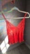 This stunning red chemise from Victoria's Secret showcases intricate lace detailing at the bust, complemented by a flowy, gathered fabric below. The lightweight, sheer material enhances its romantic allure, making it an ideal choice for intimate evenings. Its delicate spaghetti straps add a touch of elegance to this exquisite sleepwear piece.