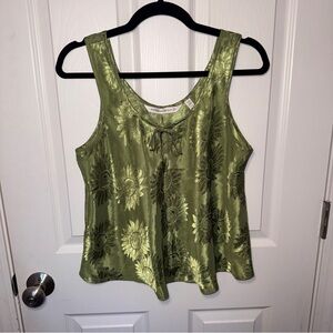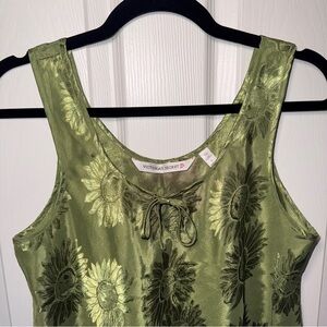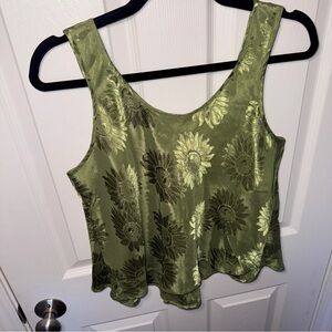 Green satin tank from Victoria Secret with sunflower detailing. Keyhole cutout with tie at chest.