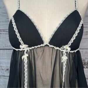 Y2K Victoria's Secret Sexy Little Things M Black Sheer Babydoll with Lace Trim