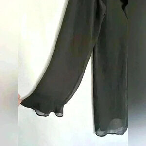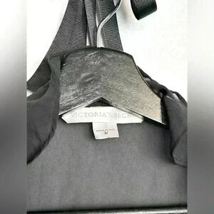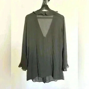 Vintage Victoria’s Secret sheer delicate ruffle trim button down tunic blouse in black. Gently worn condition.