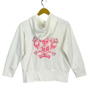 Y2K Victoria’s Secret White Pink Rhinestone Skull Full Zip Hoodie Jacket Small