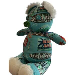 Y2K Vintage 15" Handmade Hawaiian Bear Stuffed Animal Teddy Surf Beaded Passport