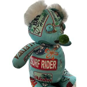 Vintage Y2K Hawaii Hawaiian tropical summer beach surf surfing surfer vacation vacationcore travel lilo stitch moana retro passport beaded embellished plush stuffed animal teddy bear teal patchwork unique