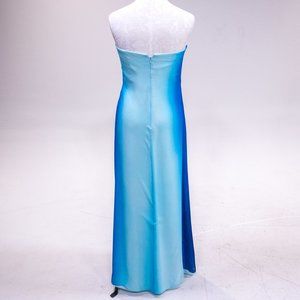 Y2K Vintage 8 Silk Dress Ombre Tie Dye Printed Strapless Long Maxi Formal Blue