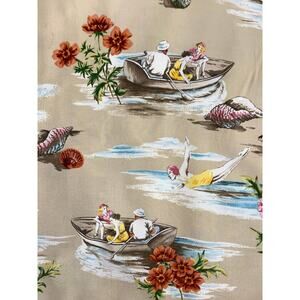 Retro Print of Diving Lady, SeaShells, Sailboats, Marlins, Rowing on 100% Rayon