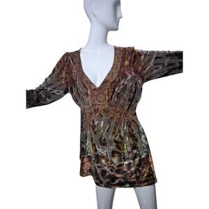 Y2K Vintage Apt 9 Velvet Burnout Womens size 1X Babydoll Embellished Whimsy Top Fairygrunge Feminine Western Boho Comfy Casual Soft Whimsigoth Fall