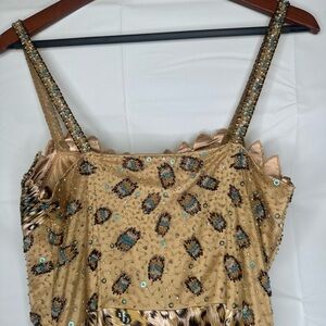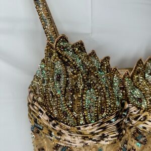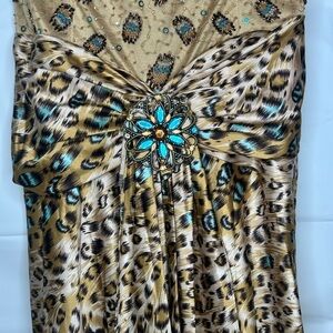 Y2K Vintage Aspeed USA Leopard Print Turquoise Accent Beaded A Line Gown size L