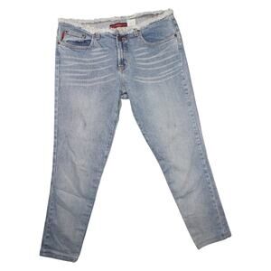 Style: Low Rise, Slim/Straight Leg with a unique Factory Frayed/Raw Cut Waistband.